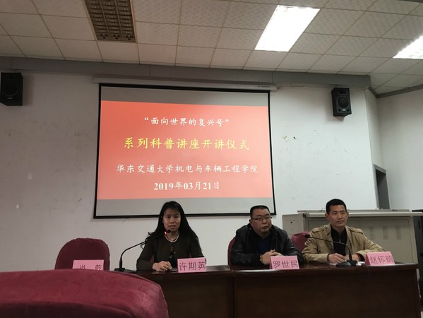 3月21日下午,威廉希尔官网主办的“面向世界的复兴号”系列科普讲座在教13栋学术报告厅举行开讲仪式。同时,邀请了学校教务处副处长罗世民副教授作为第一讲的主讲嘉宾。南昌石人教育科技有限公司总经理赵怀瑞博士应邀出席,轨道车辆系主任许期英副教授担任主持。